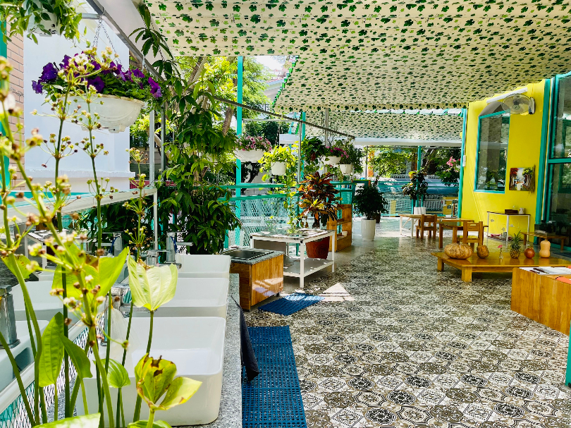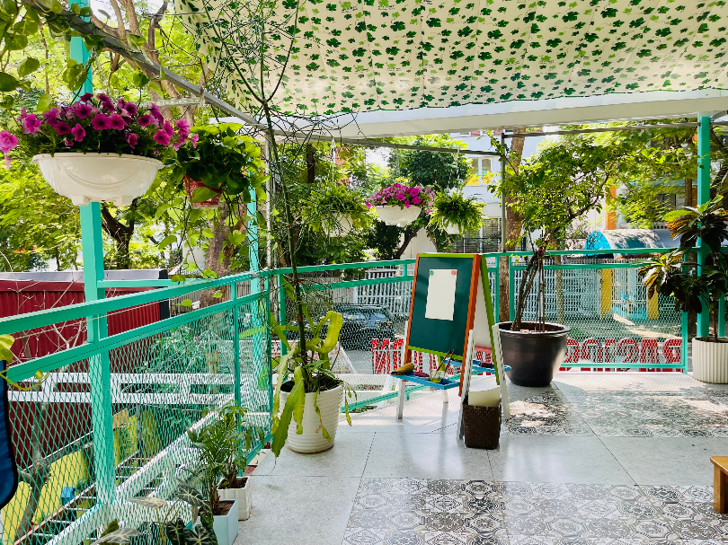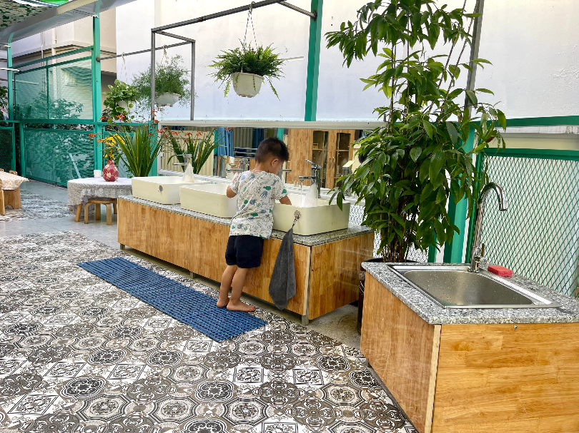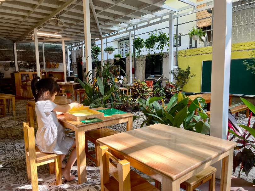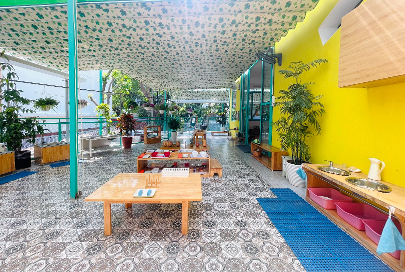 > Môi trường học tập thuận Tự nhiên với sân vườn và ánh nắng ngập tràn.